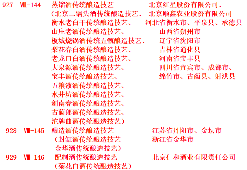 2006年5月20日,第一批国家级非物质文化遗产名录(酿酒技艺共4大项)