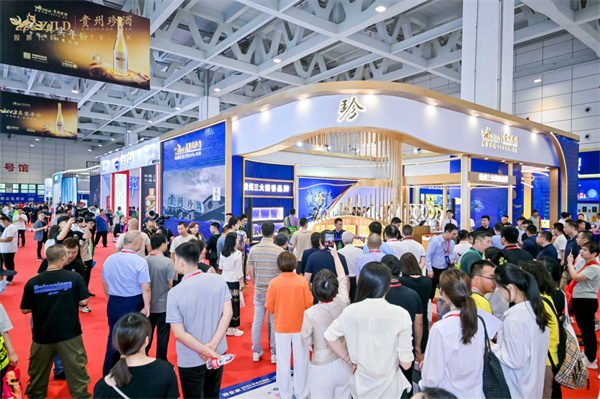 本届展会,珍酒展厅设计别具匠心、独具一格,吸引了大量经销商、参展商和观众驻足“打卡”,是最受瞩目、人流最多的展厅之一。展厅以蓝色、金色为主色调,融合点翠工艺的装饰风格极具视觉冲击力。“酒中珍品”“珍酒情深”等珍贵题字展陈、珍酒发展历史摆钟装置、贵州少数民族服饰展示等,让展厅更具文化内涵和底蕴。参展产品方面,不仅包括珍酒·珍三十、珍酒·珍十五等全国知名酱酒主力产品,珍酒1988年份酒、珍酒·2013真实年份等极具行业影响力的高端光瓶酒产品,还包括珍酒·珍三十大金奖纪念酒、珍酒·珍十五金奖纪念酒、珍八、珍五、标版珍酒等。互动体验方面,精心设置“珍酒典型性六香”闻香区、产品品鉴区、珍酒冰淇淋品尝区等,让观众全方位感受珍酒品牌独特魅力。