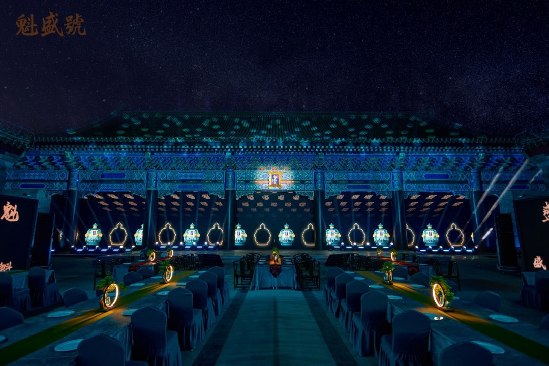 整场发布会以“雅趣”、“雅事”、“雅兴”为主线,以艺术形式巧妙的再现汉唐礼乐文化,习中国白酒之“礼”,领略千年酒文化的醇厚与雅致;感千年文化之“源”,追溯京城文明的根脉与传承;享魁盛美酒之“香”,品味牛酒风味的独特与魅力。依托文化苑主体建筑的复古布局,一进门设置了仕女提灯、扬袖踏鼓、礼官唱词、揖礼迎宾、九宾登阶等礼仪环节,庄重典雅,彰显大国风范。二进门设置了献宾之礼、乐舞之礼、诗酒之礼、仕冠之礼、沃盥之礼等,雅呈献宾之礼,恭敬谦和,表达对远朋的热烈欢迎;仕冠礼韵,庄重而不失韵味,仿佛古人风范再现;净手沃盥之礼,细节之处显真章,尽显对尊者的敬意。