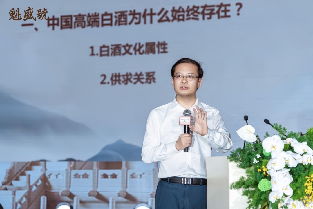 中国酒业协会理事长宋书玉强调好酒是稀缺的,我们需要讲好中国酒的故事,同时也对魁盛号给予了高度评价,认为它是文化白酒的典范。
