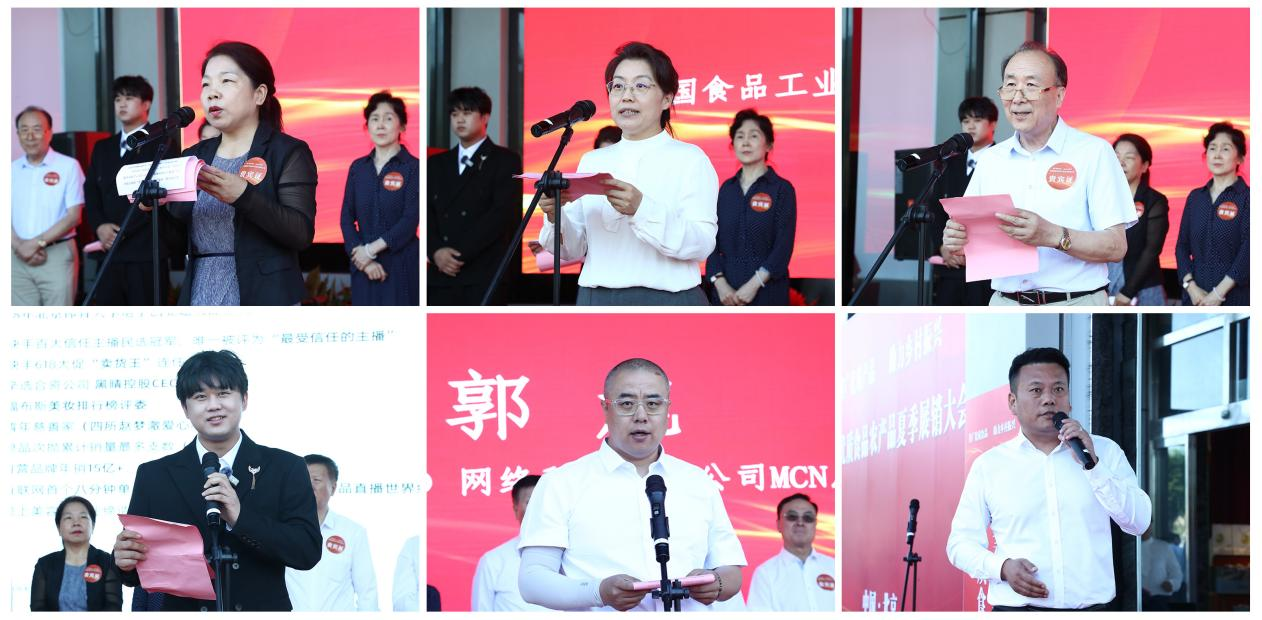 会上,中国食品工业协会法定代表人、常务副会长沈篪宣布全国优质食品农产品夏季展销大会开幕。中国食品工业协会副会长、中国食品安全报社社长朱长学为直播电商代表授牌。
