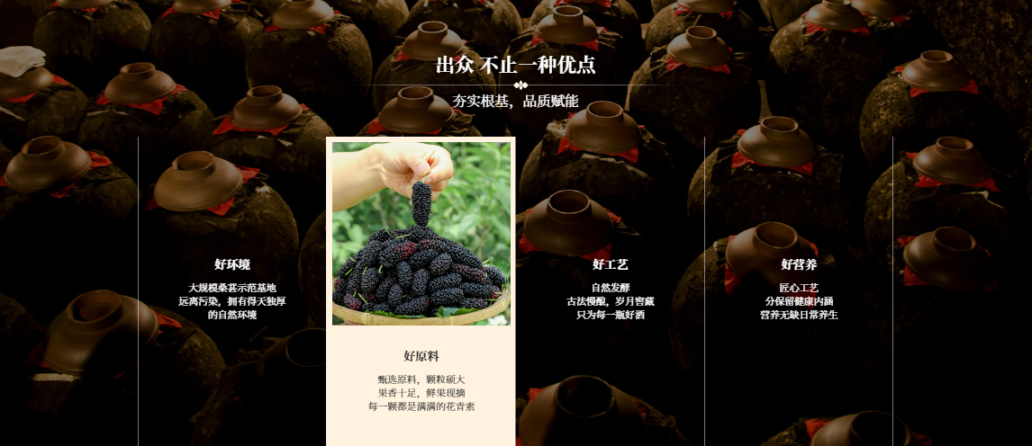 “玉天紫台”桑椹酒凭借其尊贵的气质和卓尔不凡的品质,赢得了消费者的广泛赞誉。公司携手多位酿酒领域的知名人士,经过长时间的匠心研发,成功将桑葚的营养价值与酒文化相结合,打造出了一款至真至简、精品佳酿的桑椹酒。采用自然发酵、古法慢酿的酿造工艺,确保了酒品的口感醇厚、香气纯正。每一滴“玉天紫台”桑椹酒都蕴含着匠人的心血和智慧,为消费者带来了独特的品饮体验。