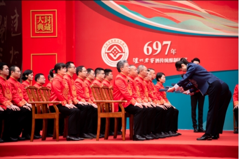 李宾表示:“泸州老窖酒传统酿制技艺传承至今,已经迎来第二十四代酿酒门人。通过697年不断传承、严格的师承关系,让泸州老窖酒传统酿制技艺至今长盛不衰。”他介绍,古时技艺传承更多是通过师徒间的口传心授,但如今泸州老窖更是早已经将这一套传统白酒酿制技艺提炼固化成为了一套科学的方法论,这是在传承中创新的举措。代续仪式体现了泸州老窖对传统技艺坚守传承,也是对非物质文化遗产的保护弘扬。