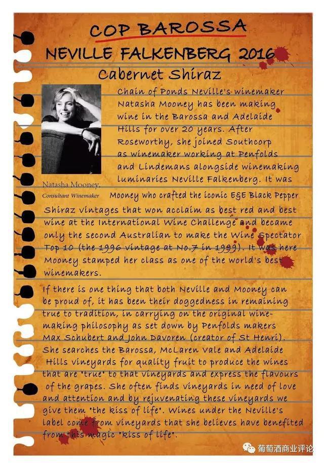 “奈维斯”葡萄酒的现今年份酿酒师“娜塔莎.穆尼(Natasha Mooney)”在巴罗莎谷和阿德雷德山产区有着超过20年的酿酒经验,在Roseworthy酿酒专业毕业后,她加入了“南方葡萄酒公司(Southcorp)-TWE富邑”,师从“奈维斯.法尔肯伯格”成为“奔富(Penfolds)”和“利达民(Lindemans)”的酿酒师,“娜塔莎”创造的1996年份巴罗莎葡萄酒在1999年“伦敦国际葡萄酒和烈酒挑战大赛(IWC)”获得全球最佳红葡萄酒荣耀,并获得《Wine Spectator》全球十大葡萄酒。娜塔莎这时已成为世界级的最佳酿酒师之一。