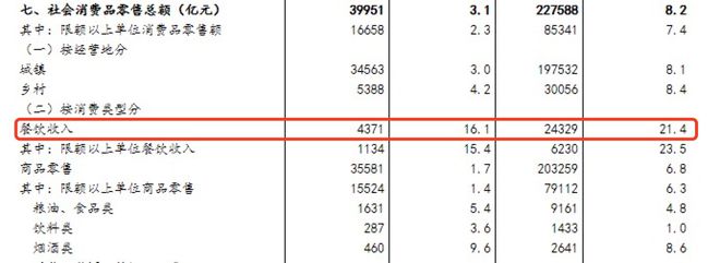 相较于酒水行业而言,餐饮和旅业基本恢复至疫情前水平。国家统计局数据显示,2023年上半年,全国餐饮收入24329亿元,同比增长21.4%,成为前六个月反弹最大的消费品类。