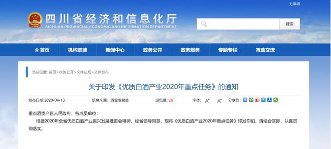 2020年4月中旬,四川省印发《优质白酒产业2020年重点任务》,提出将积极联合川菜联盟、四川美食家协会,搭建川酒、川菜交流合作平台,探索建立覆盖知名连锁川菜酒。