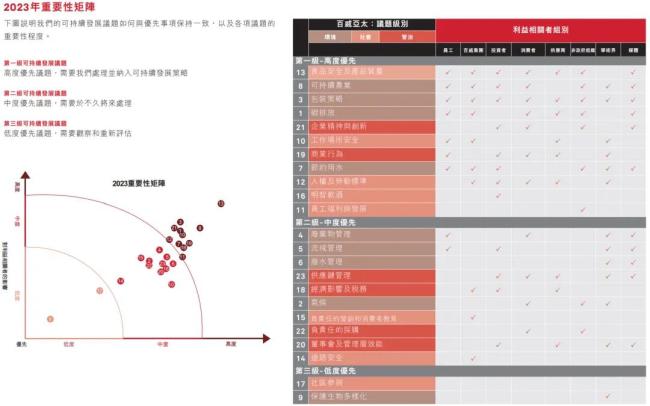 2023年,百威亚太邀请了来自员工、消费者、供应商、社区、投资者等184位利益相关者参与调查,对20余项相关的可持续发展及社会议题进行了评估,食品安全、可持续农业、包装策略、碳排放等议题被放在了前列。