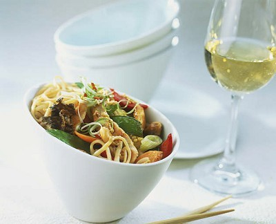 和热情奔放的红酒相对,低调的白葡萄酒其实与中国菜更有缘分。所谓物以类聚,白酒的伙伴通常都是随和而淡泊的。以白切鸡和长相思(Sauvignon Blanc)为例,圆润的口感正好配合鸡肉的柔滑,调味的葱香和热带果香互相增强,把你带入丰收的果园。而中国南方的海鲜佳肴和低调的赛美蓉(Semillon)更是绝配,适当的酸度可以去除海鲜的腥味,辛香和清新的口感能够提出鲜味,促进食欲。而来自德国的清新雷司令(Resiling)更是能够去除炒面、春卷等传统中国美食的油腻,可谓最佳搭档。另外,个人觉得,口感略甜清香型白葡萄酒与中国的馒头、窝窝头等面食也有不错的姻缘。如果说红酒和中国菜的搭配是一场亢奋的游戏,那么与白酒的搭配则是更为优雅而随意。