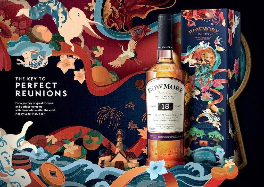 博摩尔是苏格兰最著名的威士忌生产商,2023年农历新年推出了全新的兔年特别款包装,以博摩尔酒厂历史的插图为特色,同时融入了传统的中国元素。在亚洲地区这款酒的知名度并不是很高,但是这样的设计可以beat365让这款酒在亚洲地区被熟悉。